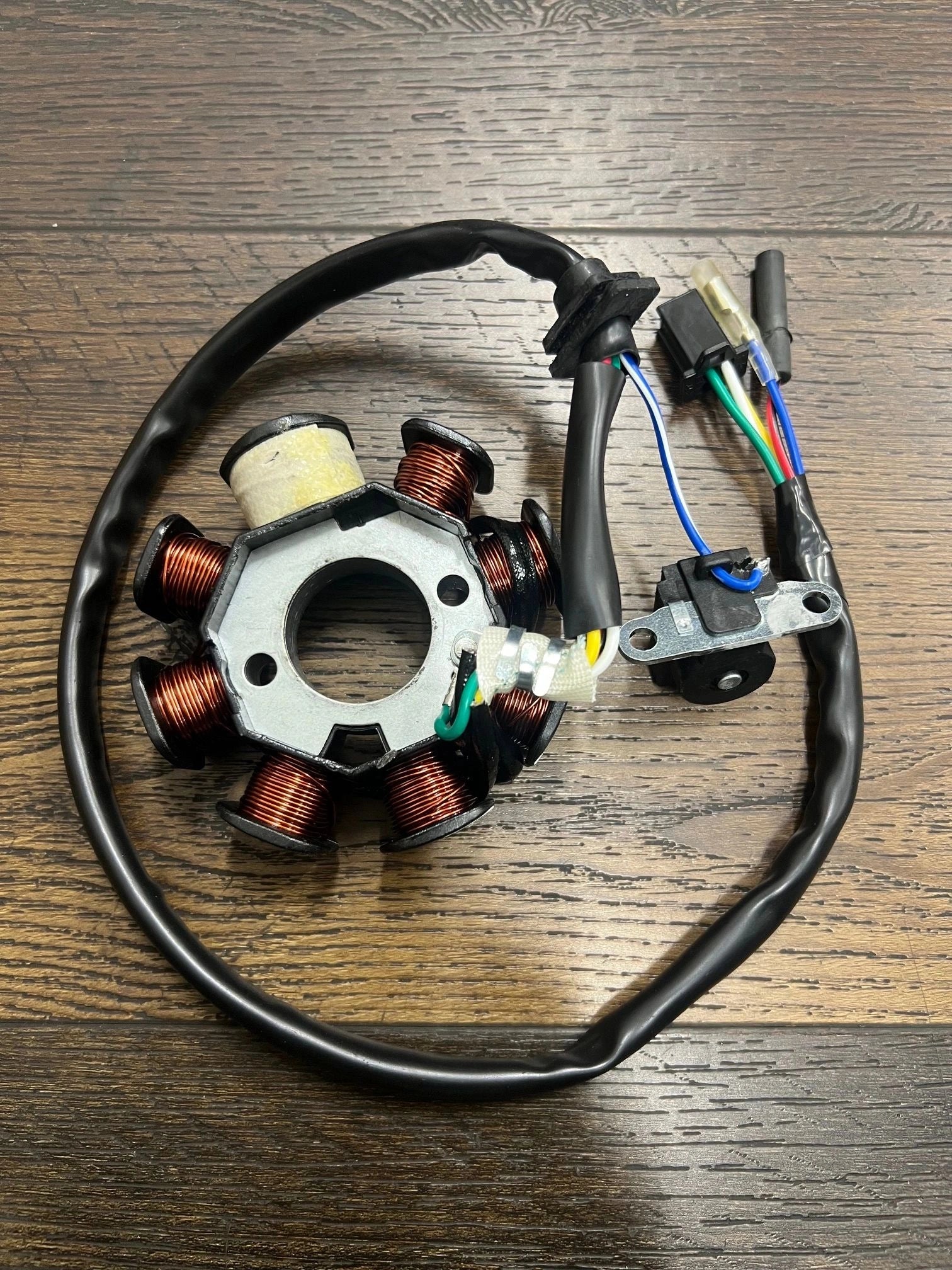 MAGNETO STATOR ASSY, 5 wires, 8 coils. It fits on Blazer 150/200, Cheetah 150/200, Challenger 150/200, Go KART 150/200.